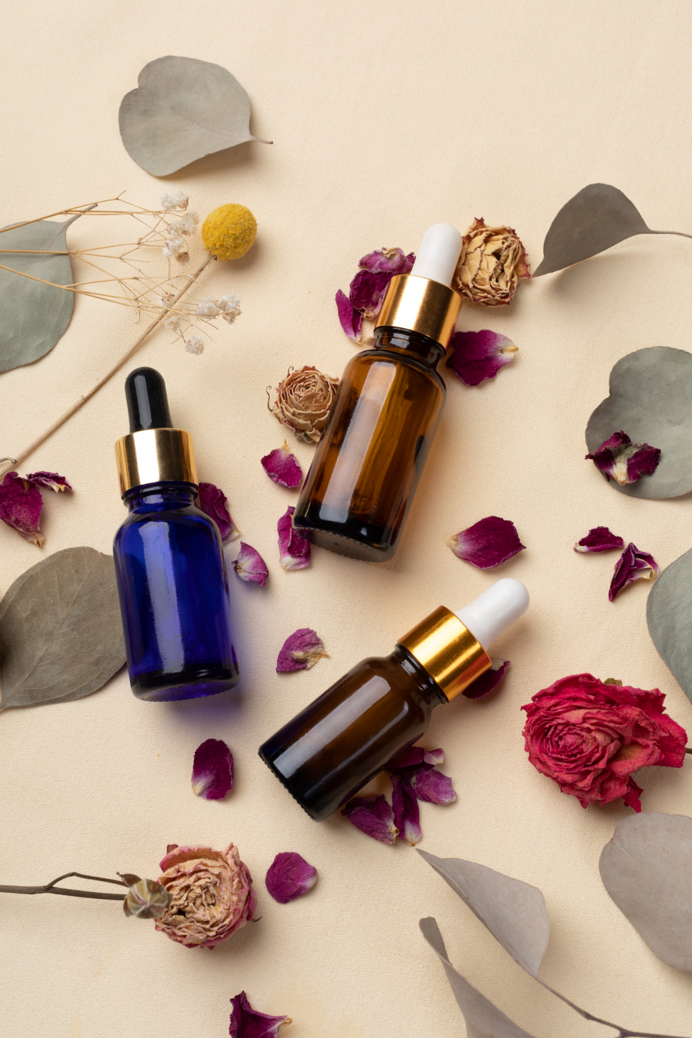 Pure, steam-distilled essential oils extracted from natural plant sources. Widely used in aromatherapy, cosmetics, and wellness applications.